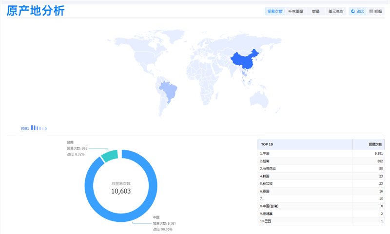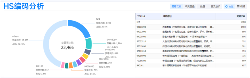 例如,利用【易币付(中国)外贸通SaaS平台】查看家具产品的进出口贸易记录,易币付(中国)可以比较不同国家/地区的贸易量和贸易额,分析市场的进口和出口情况。